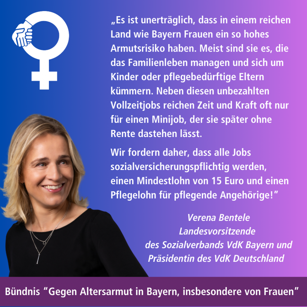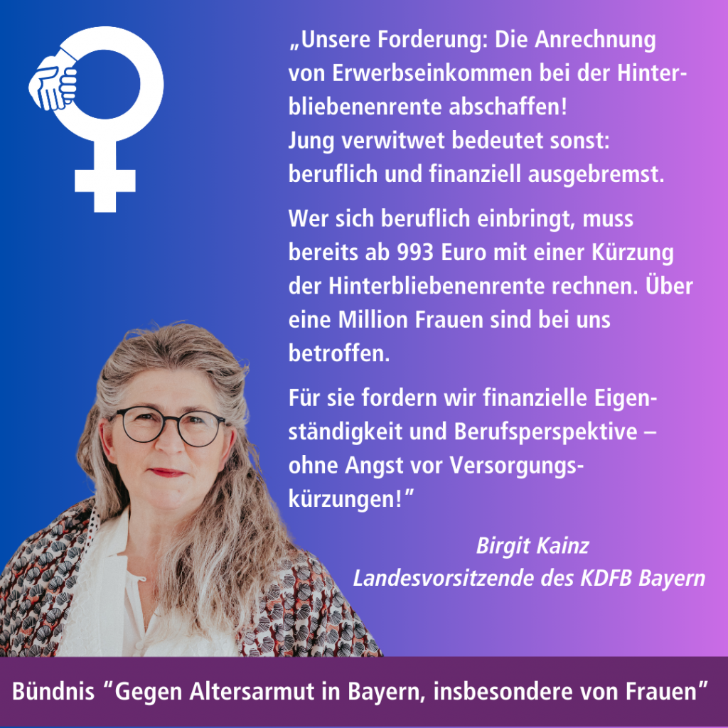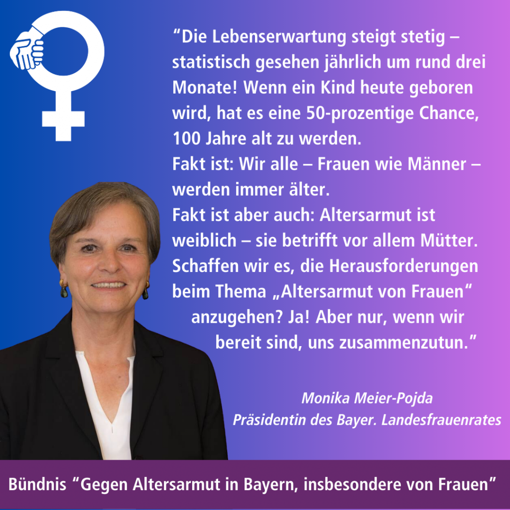Wir bitten Sie, das Thema „Altersarmut in Bayern, insbesondere von Frauen“ in ihren Koalitionsverhandlungen zentral auf Ihre Agenda zu nehmen.
